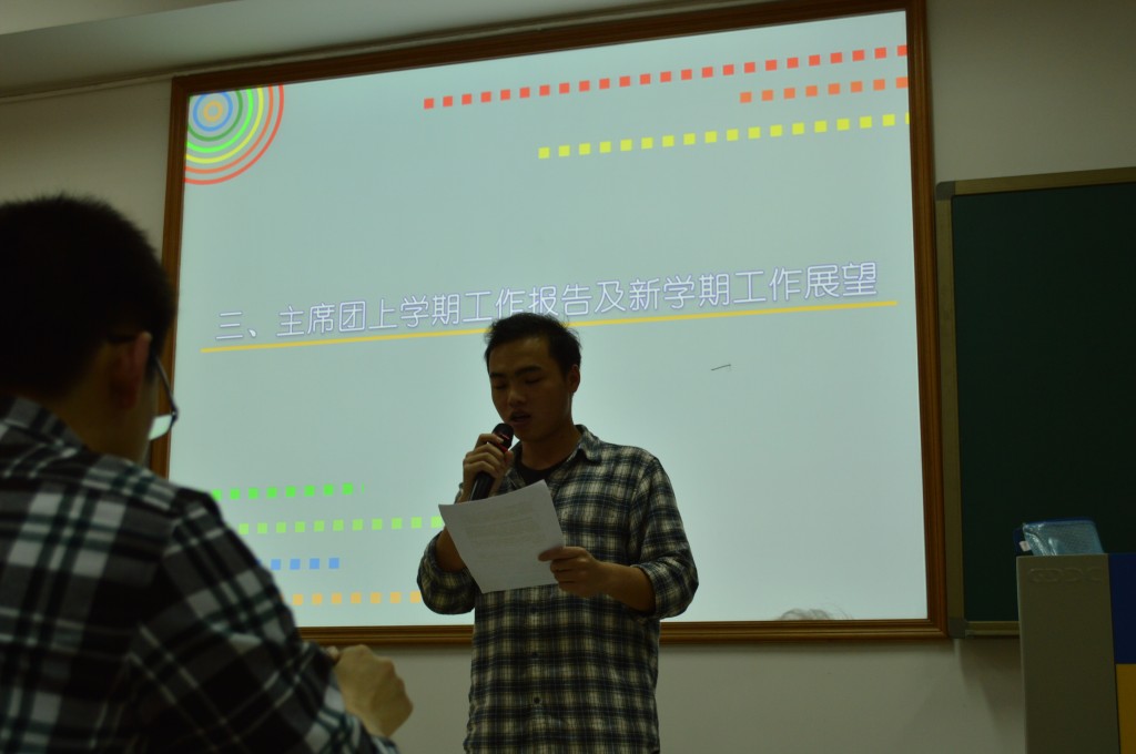 会上,学生会主席招智彬认真总结了学生会上学期各项工作,上个学期学生会认真总结和提炼出了自身的“鸿鹄团队文化”,修订了学生会章程,完善了各项规章制度,进一步加强了团队的凝聚力、战斗力、执行力,为打造一支“服务型、学习型、创新型”的学生团队奠定了坚实基础。学生会还围绕学校中心工作,扎实开展了“青马工程“培训、艺术文化节、新生杯辩论赛、迎新晚会、班级篮球赛等校园文化活动,极大地丰富了同学们的业余文化生活。招智彬对接下来的工作做了安排部署,希望学生会积极做好“班风规划大赛”、“十佳优秀毕业生”评选、“师生恳谈会”等各项工作筹备,以优异的成绩迎接“五四青年节”的到来。