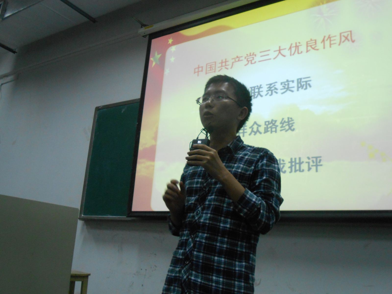 本次党课的主题是“批评与自我批评”。张炜同学以现场开展批评与自我批评的形式进行了互动式授课。他首先进行自我批评,对自己在过去两年来存在的不足进行检讨,并以具体案例分析的形式委婉地批评了学生党建在工作过程中的不足,建议学生党建工作应多与基层党支部、团支部沟通交流,了解基层的意见,对学院各党支部组织生活和工作流程提出了宝贵的建议。同时,他还建议同学们应做到“吾日三省吾身”,学生干部应带头自我批评,形成有利于开展批评与自我批评的浓厚氛围。罗泳彬同学则围绕主题向大家阐述了开展“批评与自我批评”的意义、态度、方法和应把握的原则,在方法上应该“先表扬后批评、公开表扬私下批评、先调查后批评、先聆听后点评、控时间忌唠叨、只对事不对人、多启发少责备”;在原则上应该把握“目标原则、主动原则、公开原则、适度原则、艺术原则”五大原则,开展批评与自我批评要注意把握时间,选择适当的时机;把握空间,选择适当的场合;把握对象,因人而异;把握情感,以情动人;把握语气,以诚待人。