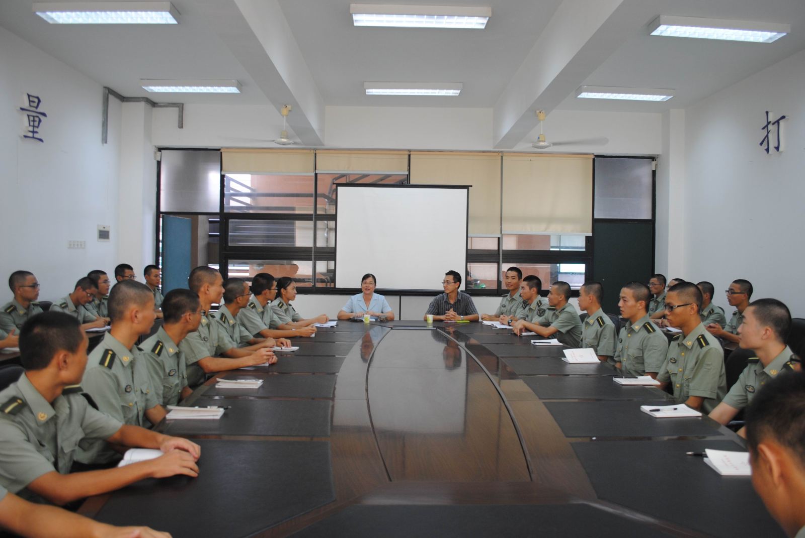随后,2011级国防生陈剑锋、王承、苏微分别就训练、生活、学习三个方面讲述了自己的经历和收获,分享体会。在互动环节,13级的国防生积极发言,纷纷向师兄师姐们讨教如何合理安排学习和训练、如何处理校园文体活动和学习的冲突,如何处理好人际关系等。对此,11级的国防生们一一细心地解答。
