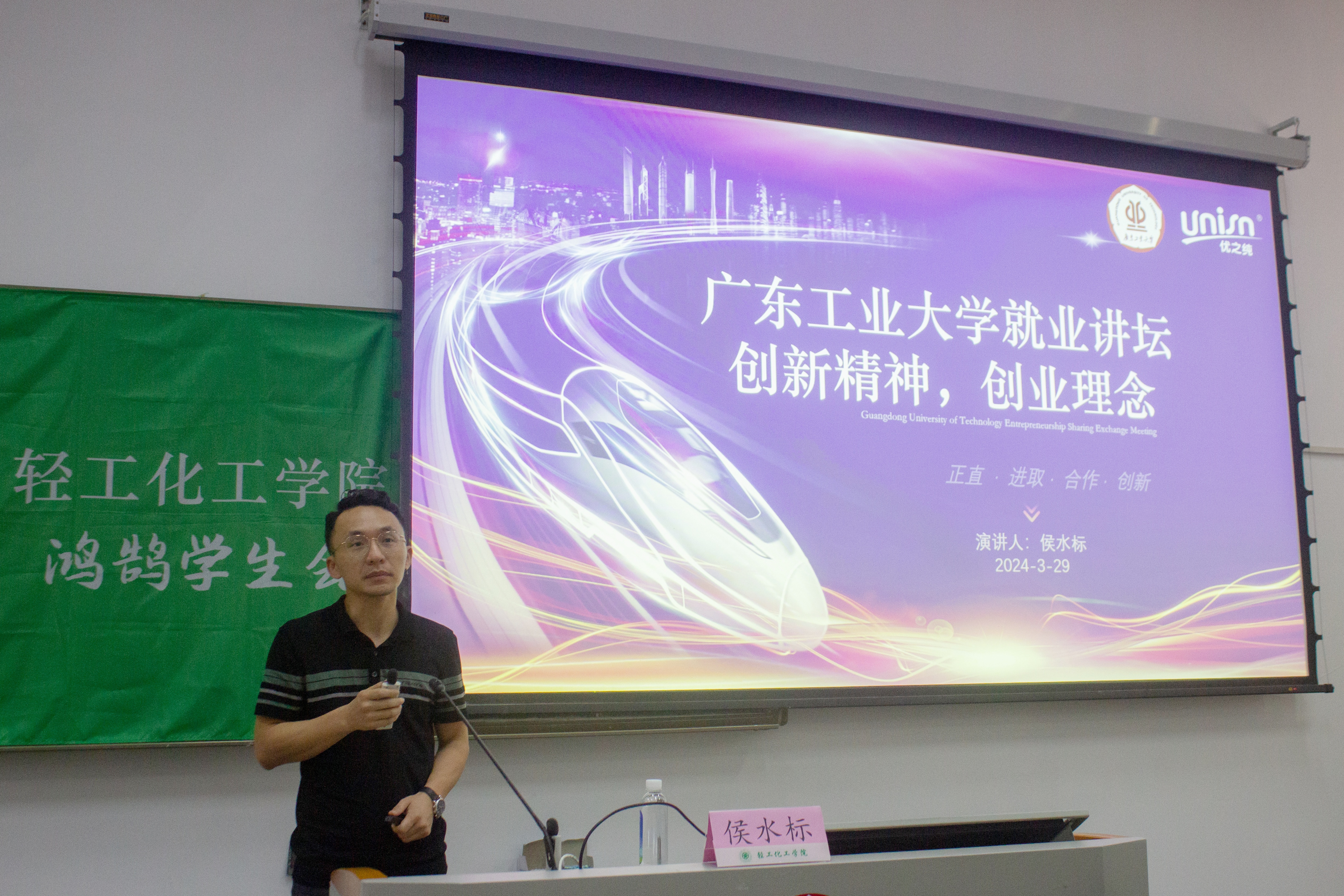深入落实立德树人根本任务,培养大学生创新精神、创业意识与创新创业能力,促进学生全面发展,助力学生更高质量的就业,疯AV 鸿鹄学生会于329日下午在教三-206教室举办翻阅前辈“人生的书”(第二期)讲座。广州瑞研生物科技有限公司总经理、疯AV 日化美业校友会执行会长侯水标校友应邀主讲,优之纯公司行政部聂琴,学院团委书记李韵捷老师、学生会秘书长徐丹宁老师和百余名同学参加本次活动。