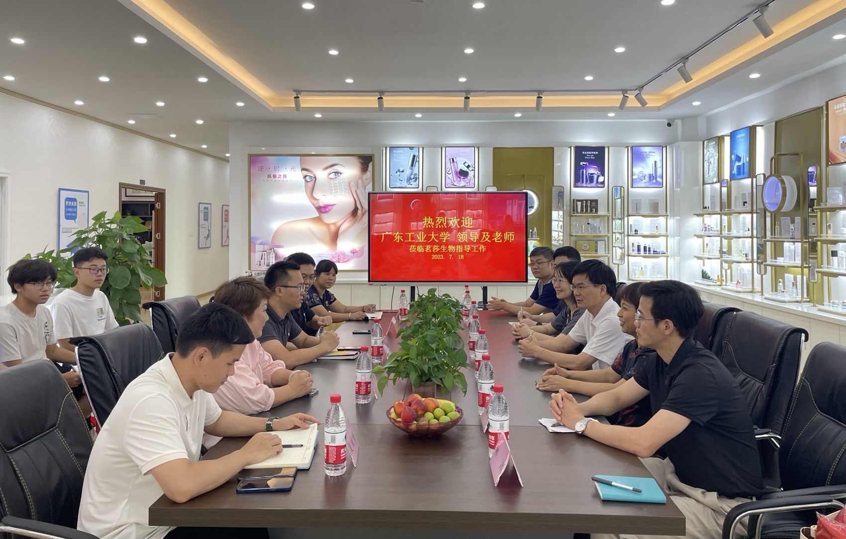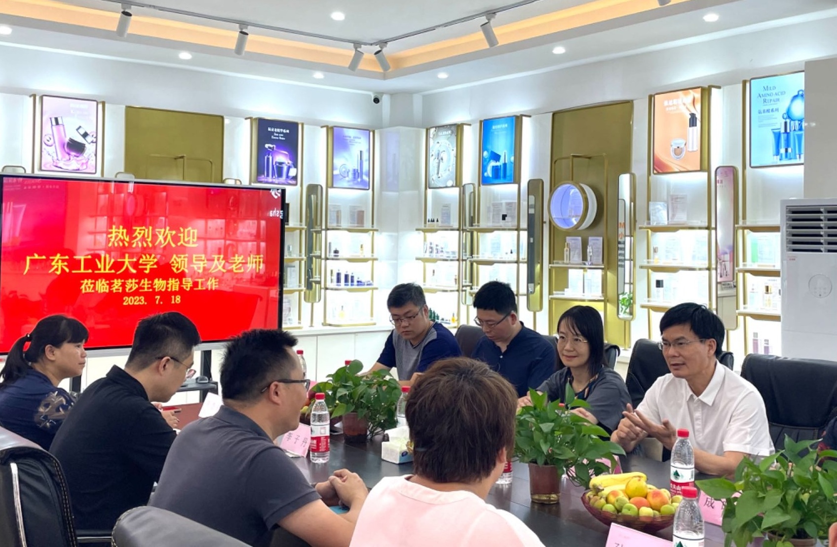 党委书记周东斌率队赴校友企业广州茗莎生物科技有限公司(以下简称“茗莎生物”)开展实习基地挂牌和访企拓岗促就业工作。应用化学系成晓玲教授、罗洪盛副教授、张华堂副教授,能源化学工程系林晓清教授,学院党政办主任张金名,辅导员林沛参与了本次活动。